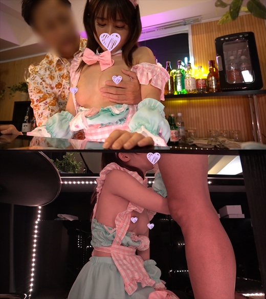 今回は【コンカフェ店長のセクハラ面接記録..45】のキャストのあやかちゃんに後日再度いたずらしちゃった記録映像となっております。私は基本的にお店には大事な時間にだけ顔を出すようにしており、女の子がラストになった時には防はん上の問題もあるので必ずお店に来ています。ただこの時間はお店にもほとんど客はおらず、キャストと2人きりなことが多いので面接以来のセクハラチャンスなのでございます。この日には愛嬌たっぷりの美人でスタイルも抜群の看護系女子大生のあやかちゃんがラストキャストとなっておりました。キュッとくびれたウエストに真ん丸美巨乳という素晴らしいスタイルに、愛嬌もたっぷりのニコニコ笑顔で接客するのでお客様からは絶大な人気をいただいております。看護系の大学のため女性が圧倒的に多いので、こんなにかわいいあやかちゃんでも出会いがないので2年以上も彼氏がいないらしく、スケベな身体をしているくせに経験人数は「4〜5人くらい…」という浅めで初心な感じも非常にソソってしまいますね。真っ白な美脚にあどけなさを感じる縞模様のパンティも最高ですwガッツリのませてからカウンター越しに手を伸ばしてさりげなくおっぱいもみもみしてもまったく怒らずに笑って済ませてくれる寛大な心をしておりましたので、調子に乗ってコスプレを脱がせて美巨乳を丸出しにしちゃいます。困ったような笑顔を浮かべるあやかちゃんがかわいすぎたので、我慢できなくなってしまいカウンターの中に侵入し国宝級の美巨乳を思う存分に揉みしだいてしまいました。ピンと尖ってきたキレイな乳首にむしゃぶりつき、柔らかなお尻を撫でまわしながら濃厚なディープキスを交わすといやらしい声で喘ぎながら感じてしまっているご様子。、椅子に座らせてクリトリスを舐めてあげると激しく喘ぎながら身体をビクビク震わせてイっちゃうではありませんか。俺のちんちんも舐めてほしいとお願いするとエッチな笑顔を浮かべながら積極的にシコシコし、じゅぽじゅぽといやらしい音を立てながらフェラチオしてくれます。チンポはバッキバキに勃起していて我慢できなかったので、彼女をカウンターに立たせて後ろから一気におまんこの中にぶち込んじゃいました。美巨乳をぷるんぷるんと大きく揺らしながら激しく喘ぐ彼女を見ていると思わず射精しそうになってしまいましたが、これだけでイクのはもったいないので騎乗位やバックでもガンガンに楽しませてもらっちゃいましたw天真爛漫なあやかちゃんが快楽でだらしなくいやらしい声で喘ぎながら痙攣イキしちゃう姿が最高にエロくて我慢できず大量の精子をお尻にぶっかけてしまいましたw再生時間 26分39秒解像度 1920×1080形式mp4※この作品に関わる全ての登場人物の年齢は18歳以上です。※モデルの同意の上、撮影しております。※実在する店または店員とは無関係です。※第三者への送信・転載・転売・二次使用等厳禁です。