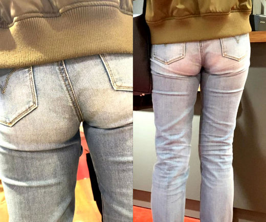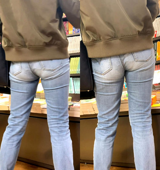 ストレッチデニムがお尻に食い込む奥様【街中風景153】