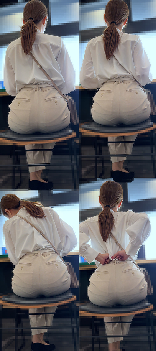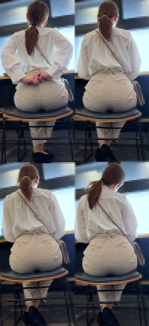 【フルHD動画】ある日のファストフード店にて♪目の前の席に白のパンツスタイルのOLお姉様が座ってきました!!ポニテで仕事が出来そうなスタイル抜群のハイスペック美女!!くびれたウエストにボリューム感あるお尻と正に理想的なスタイルのお姉様だったので期待が高まります♪最初は背中を丸めて座っていましたが、しばらくして背中を反らせてグイーッとお尻を突き出すスタイルに!!!!その瞬間!マジか!!!下着のラインがバッチリ丸見え!!しかもクロッチラインまで!!!もちろん綺麗なお尻の形が丸わかり!!生地がお尻の割れ目まで食い込みかなりエロい状態!!これはたまりません!!!もうビンビンに勃起してしまいました(汗)今回も全身、お尻アップとじっくり撮影しています♪画面いっぱいに迫力満点の巨尻をじっくりと堪能できます!!お尻フェチにはたまらない作品となっております。街中で見かけるエロい瞬間!!そんなときシコシコしたい衝動に駆られるそんな方に是非オススメです!!60pの滑らかな映像になってます!【カートに入れる】ボタンの下にある【お気に入りアップロード会員に追加】を押していただくと新作情報をいち早く提供できます!!再生時間:19分02秒 容量: 1.33BHD動画 mp4(h264 1080×1920pix / 60fps)※※※注意※※※・タイトルは妄想を膨らませる事を目的としてつけられています。・本作品に登場する人物は18歳以上である事を確認しております。・本作品に登場する人物はモデルであり、同意の上で撮影を行っています。・本作品は公開する事を目的として、あくまでもシチュエーション動画として撮影しました。・本作品は私生活の中にあるフェティッシュを追求するものでです。・画像、動画等の転載を一切禁じます。・Gcolleサイトの規約に違反するものではありません。