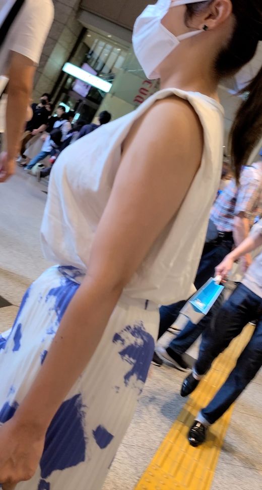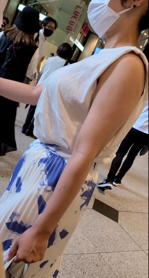 横乳の破壊力!爆乳美女モデルのパイ揺れ!