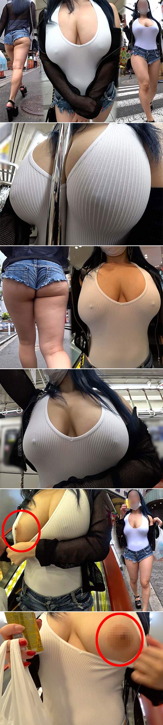 【Kカップ×爆尻】ノーブラ爆乳&肉厚ヒップ美女が街中で暴れ散らす!!勃起乳首をチラ見せするド変態っぷり!!