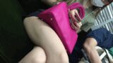 灯に照らされてピチピチのタイトスカートを見せつけて歩いていくと、やがて駅の中へ。ここで混雑のためにグイッと接近したりローアングルから見上げたりと、さまざまなアングルでアプローチしてみました。