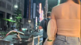 更衣室から出てきた彼女を発見すると同時に野外スペースへ通じる階段で後方ポジションを確保