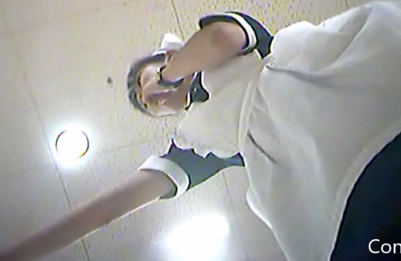 めちゃくちゃめちゃくちゃ可愛い制服を着た、可愛いお菓子屋の店員さん。2名を逆さ撮り!2名とも純白パンティでした。