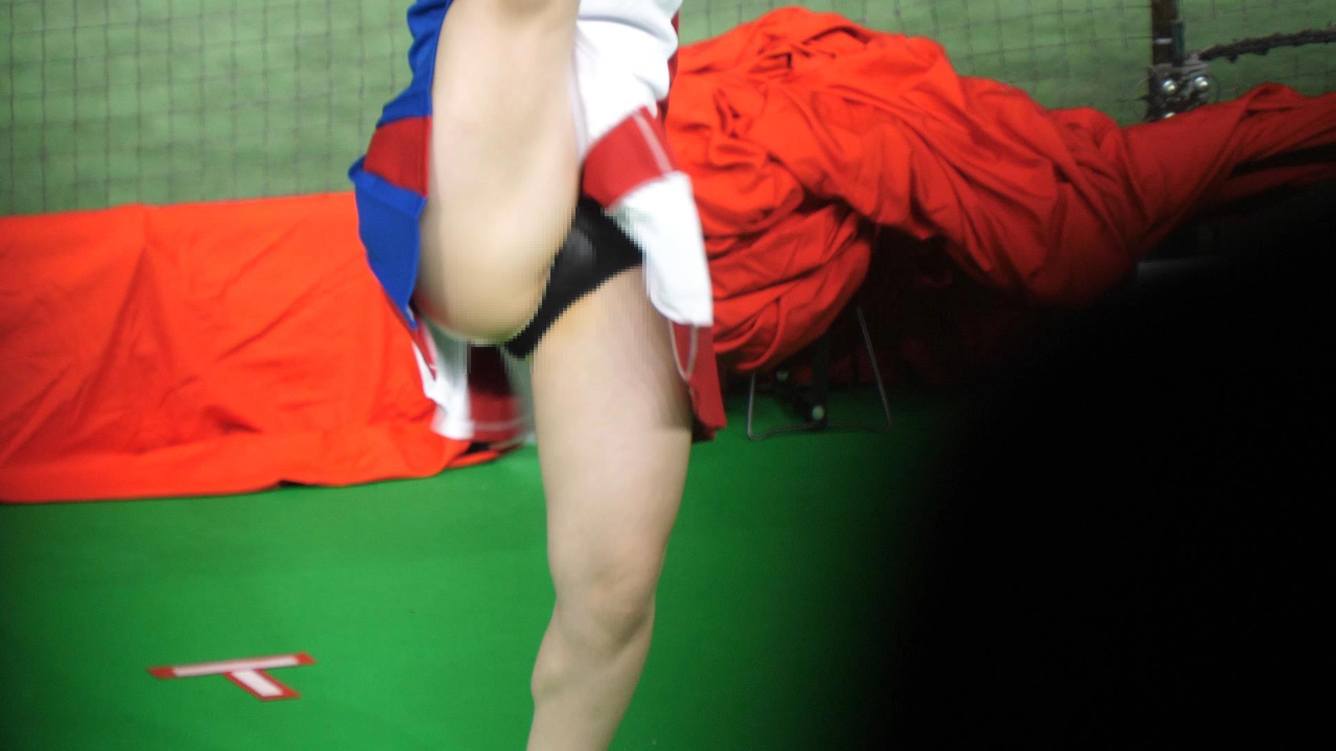 ちょっと色気のあるチア娘は…豪快ハイキックでハミパンやないか!はみ出したいならハミ出してくれてええんやで!我慢したらアカンがな!