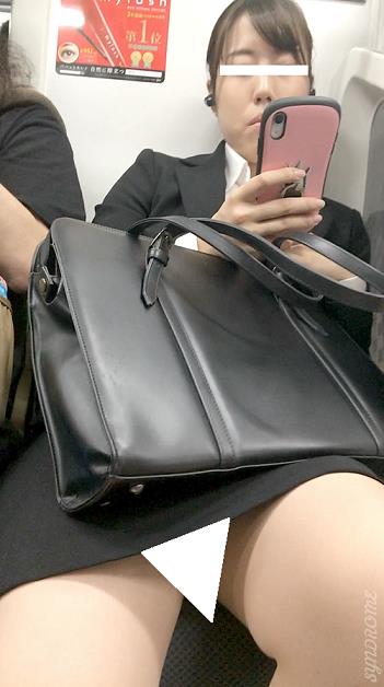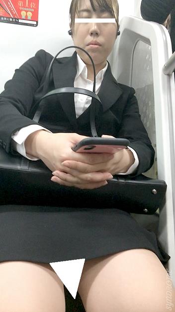 (電車対面)(顔出し)スマホに夢中も…最後はむき出しのパンストふとももをきゅっと閉じちゃう…リクスーJDお姉さんを観察してみまし