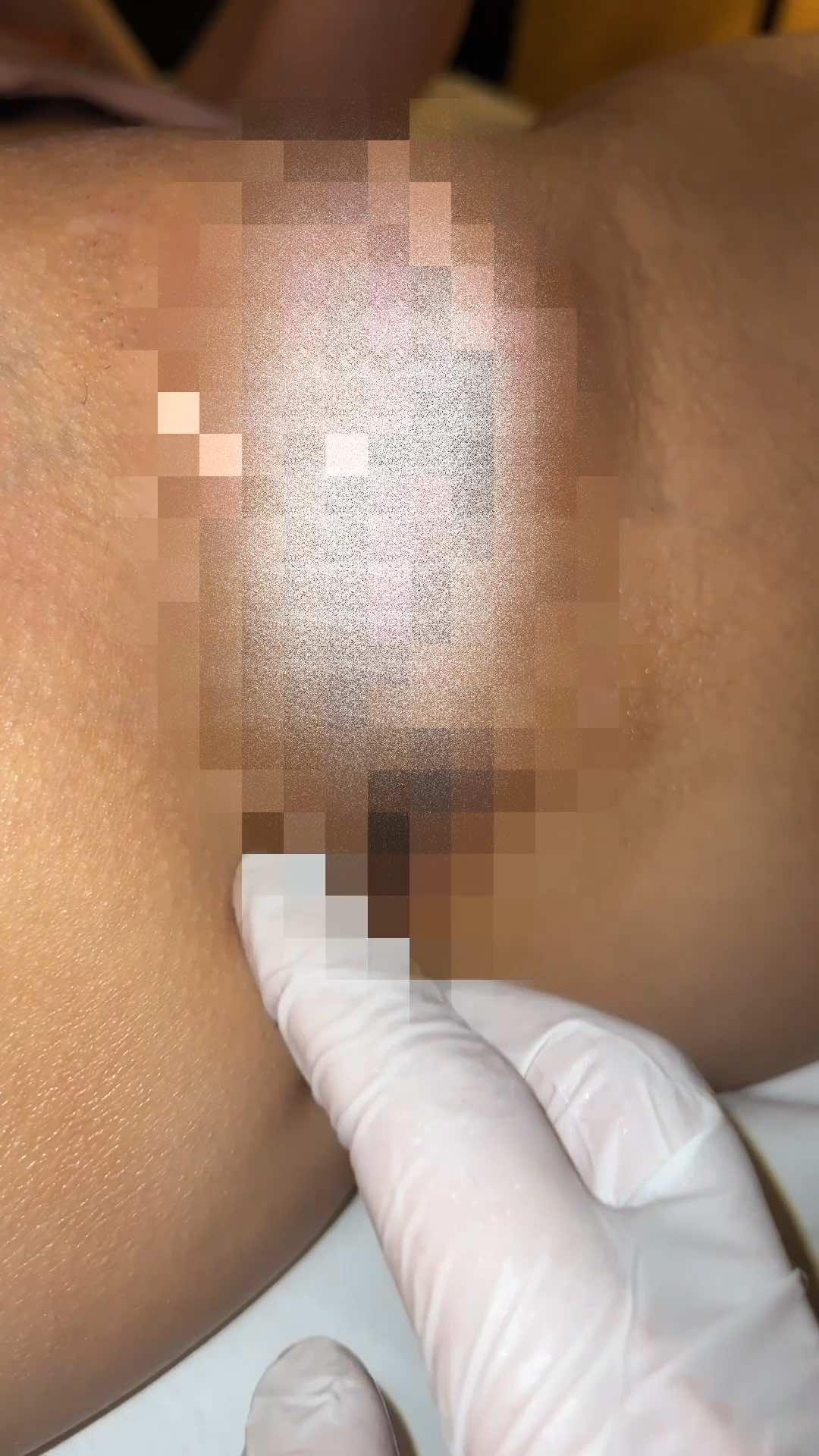 垂れてくる精液をほっかほかの女性器に塗りたくって浸透させます。
