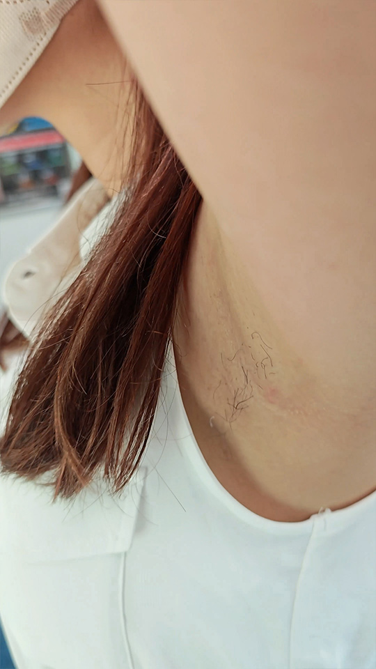 【腋毛超接写】ノースリ白ワンピ女子の伸びかけ腋毛を追跡超接写