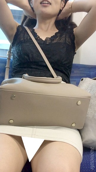 (電車対面)(顔出し)えちえち…スレンダーボディを包む布面積を最小化…二の腕…むちむちふともも…むき出しにしちゃう美人お姉さん