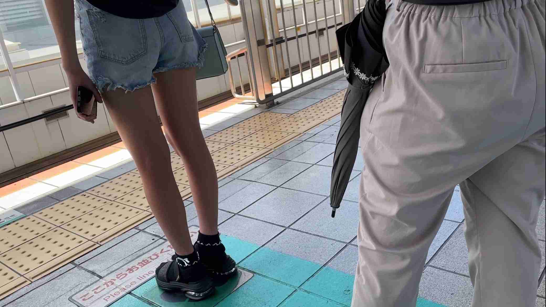 【再販】私服JKの水色デニム短パンからむき出しエロ美脚2人をget!!