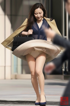 AIによる画像で、被写体は20~40代の女性10人の、風でスカートが浮き上がった瞬間を捉えています。