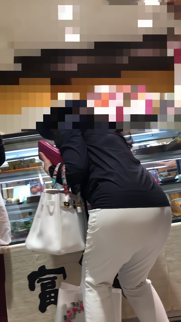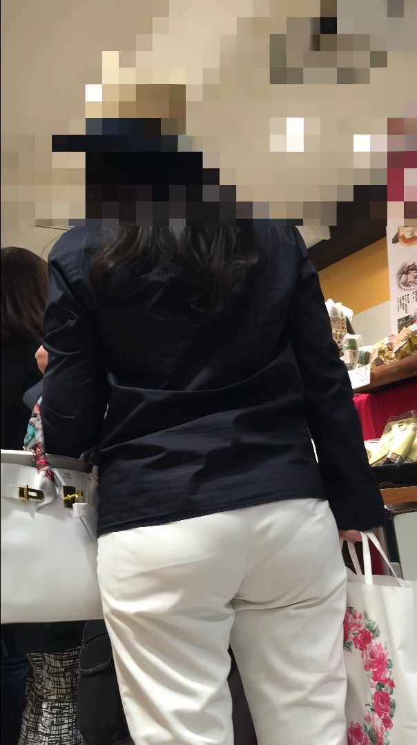 ある日の買い物中に出会った40代と思しき奥様です。お金持ちっぽい人でしたがとんでもないデカい尻をされていました。