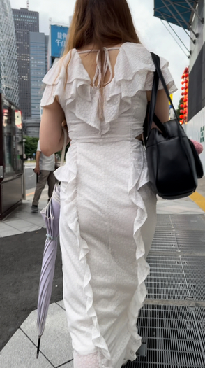 2人目はスレンダーな美尻にパン線が透けるピンクのワンピースのお姉さん