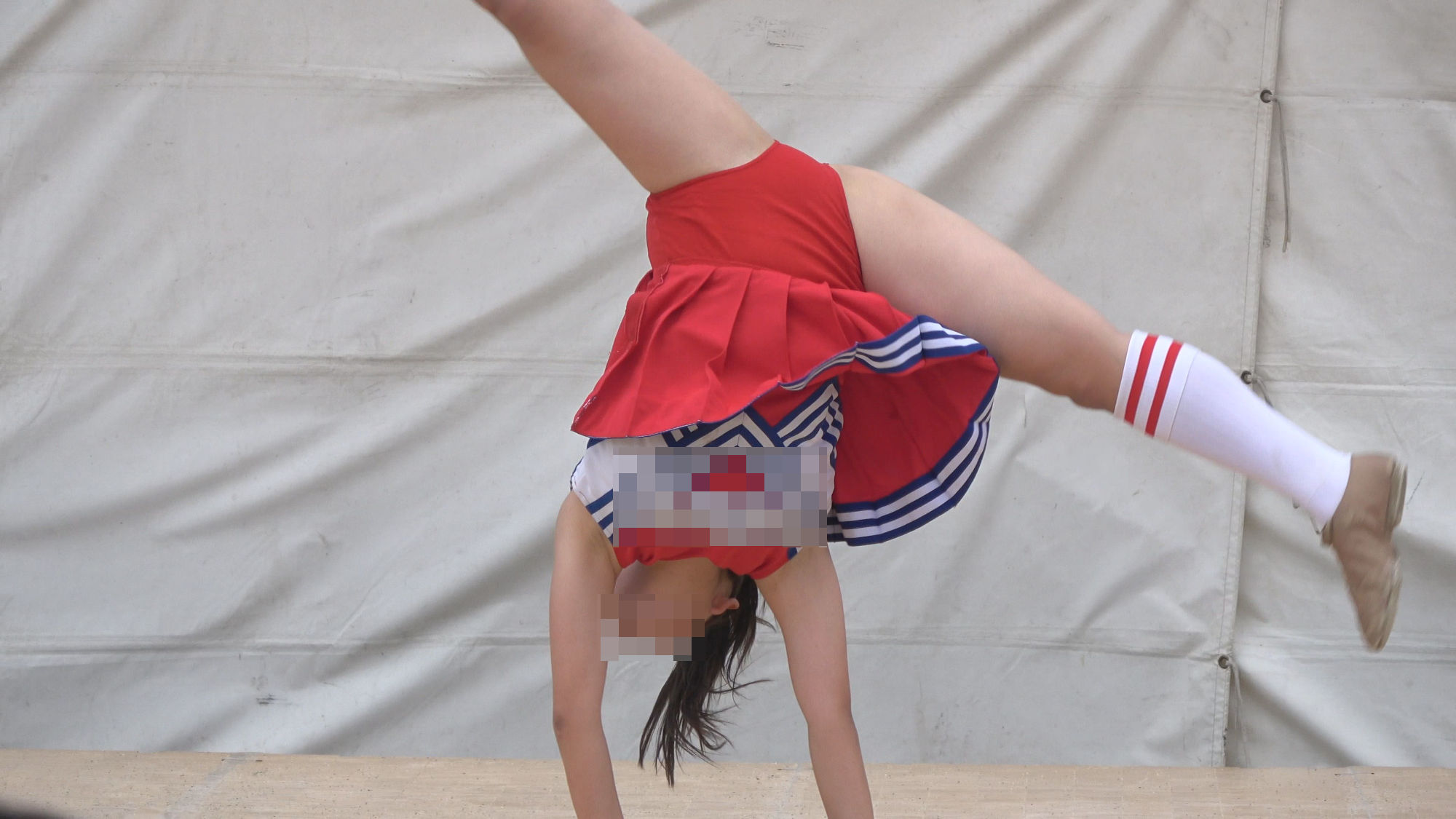 後半はチアの演技なので、大きく足を上げるシーンも多く、キレのいい演技で赤いアンスコが何度も見えます。