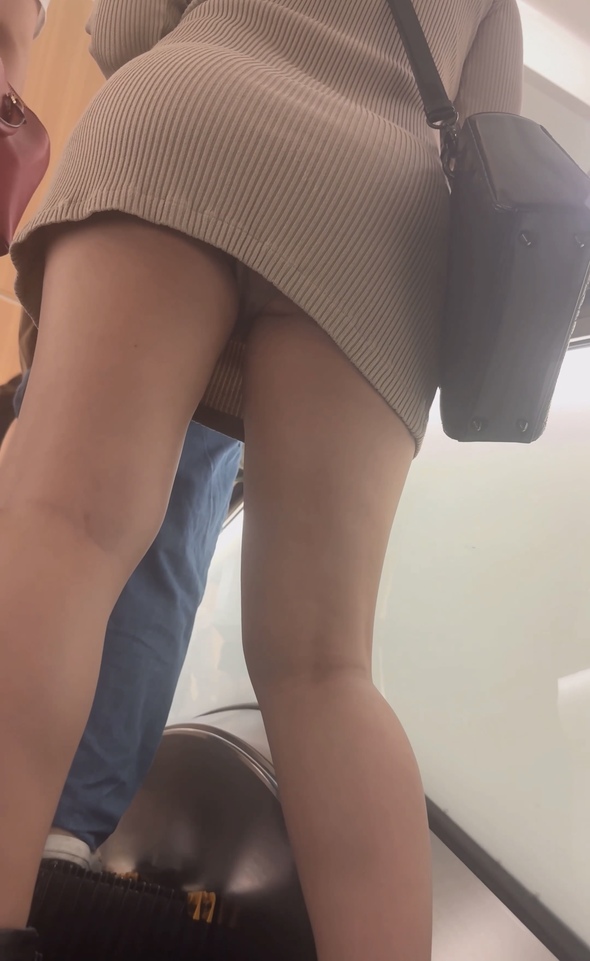 途中、エスカレーターでのローアングル撮影でパンティが見えたのがラッキーでした。接写しての撮影シーンも多いのでセクシーなお尻を堪能してください。