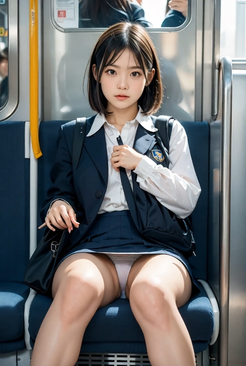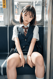電車の車内で偶然向かいに座った制服女子の股間からパンティが丸見えになっている姿を集めた動画集。