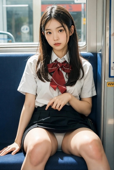 〖動画〗 電車で偶然向かいに座った制服女子の股間からパンティが丸見え♡