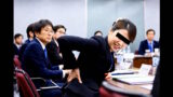 恥ずかしさも和らいだところで前を向いてもらいます。パンティーを下げてもらい、ツルツルの綺麗なクッキリ縦のラインをよく観察。とても恥ずかしそうです。