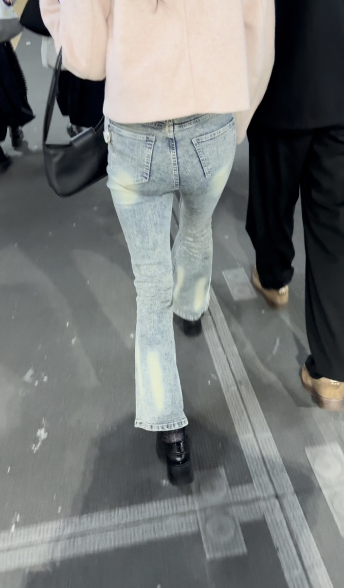 2人目(表題)は淡いピンクのアウターに淡いブルーのフレアデニムのお姉さん!