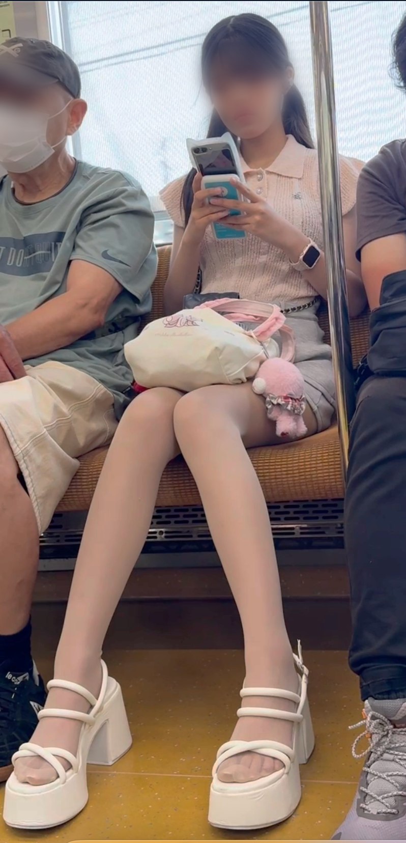 モデル級の美脚: ミニスカートから惜しげもなく繰り出されるのは、大迫力とも言えるモデル並みの色白美脚。その完璧なラインは、まさに半端じゃないです。