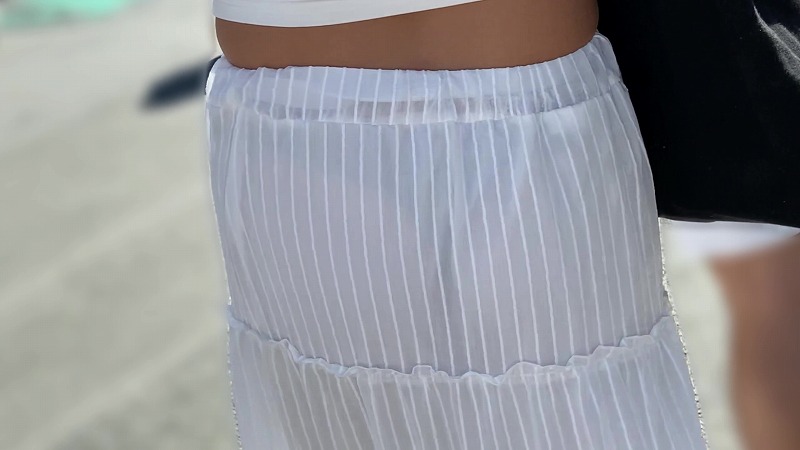 夏らしい白い薄手のロングスカートを履いたギャルに撮影させていただきました。