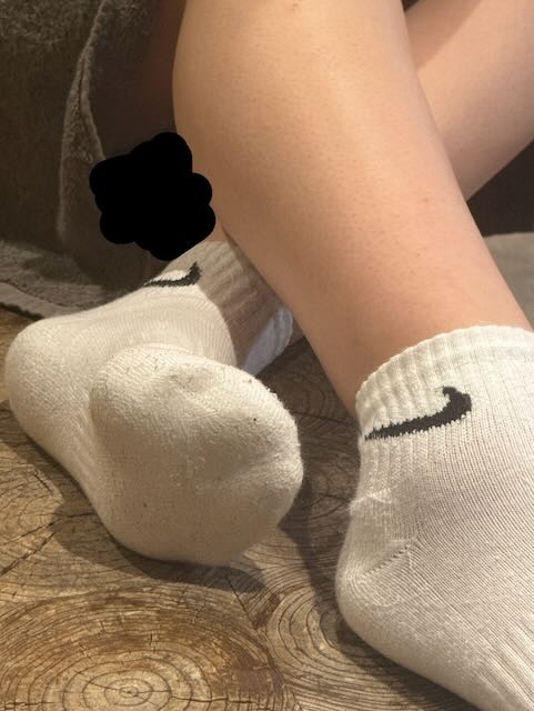 私服色白jkナイキスニーカーと白靴下足裏とつま先