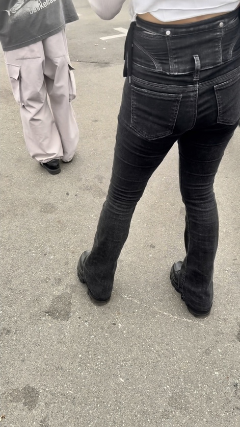 1人目は両手に買い物袋のパツパツフレアデニムのお姉さん