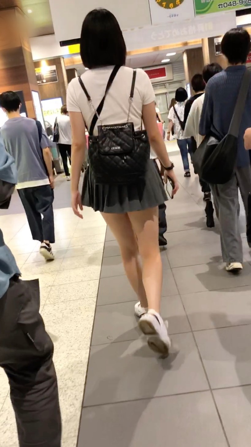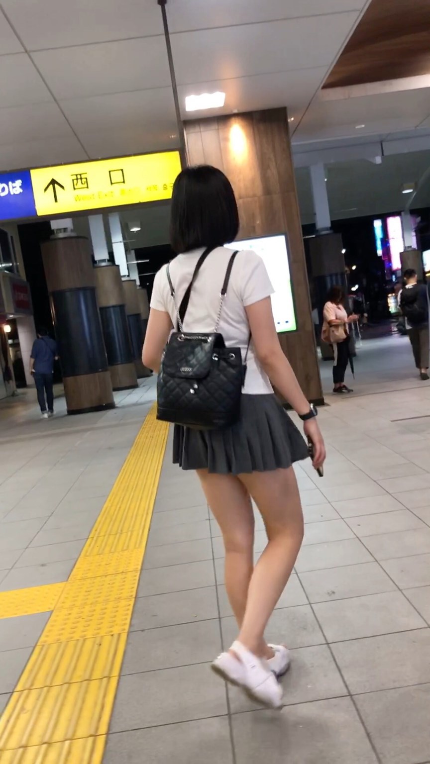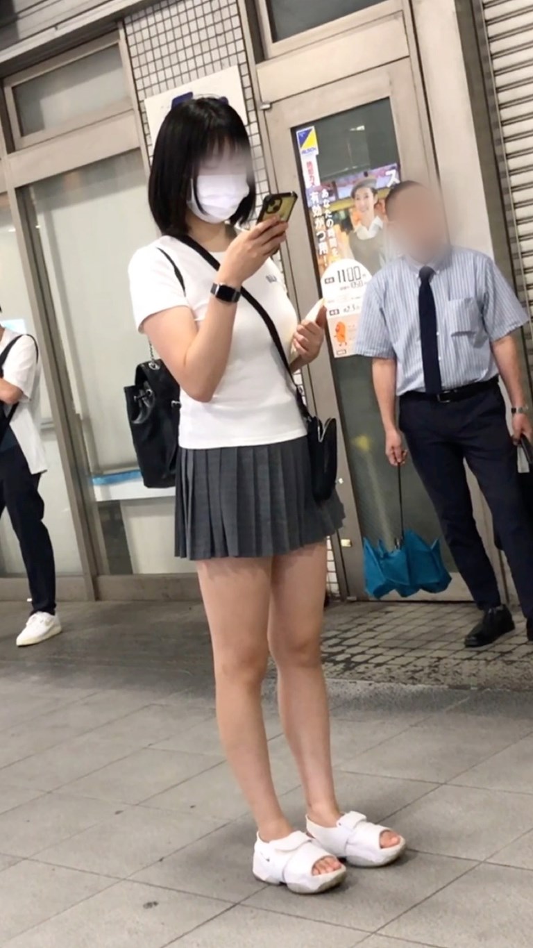 【横からの眺め372】モデル級スタイルの長身JDの生足と巨乳に釘付け!!