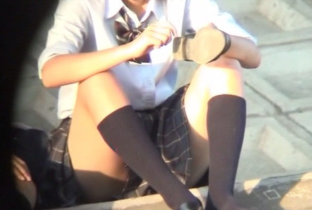 J○ 股開きパンチラ 2人組です。J○の2人組がパンティーを見せている様子になります。