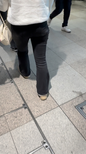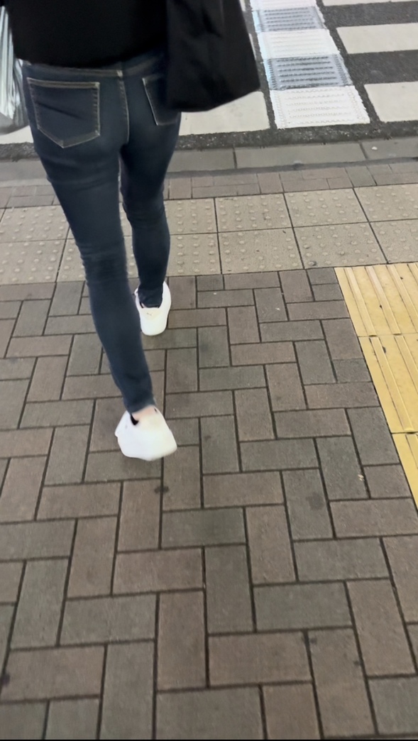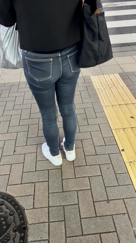 1人目(表題)は黒のトップスにネイビーのスキニーデニムのお姉さんすらっとした足にストレッチの効いたデニムパンツがいい感じ!